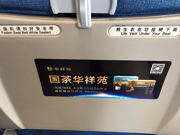 福建省の航空会社なので特殊なケースだと思われるかもしれませんが、大手航空会社の中国国際航空、中国東方航空などでも、あちことに茶の広告が溢れています。